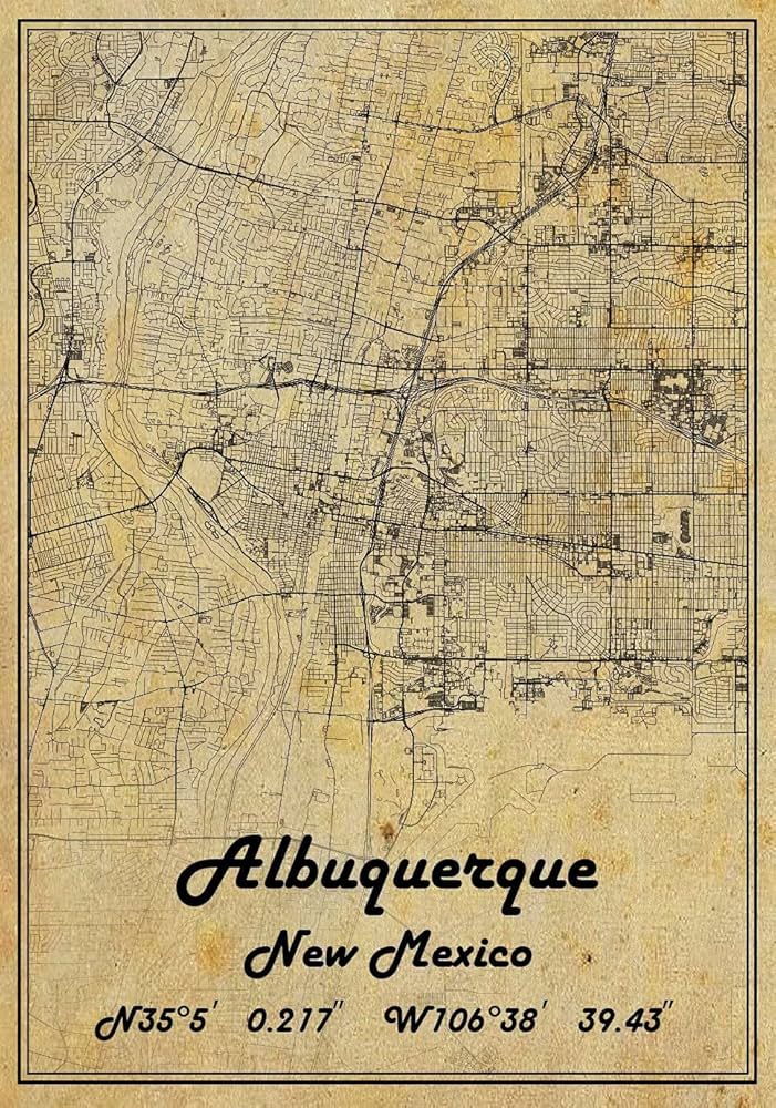 Albuquerque New Mexico USA Vintage Map Poster Albuquerque New