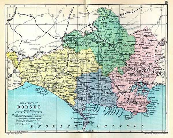 Dorsetshire 1895 Antique English County Map of Dorset Etsy Canada